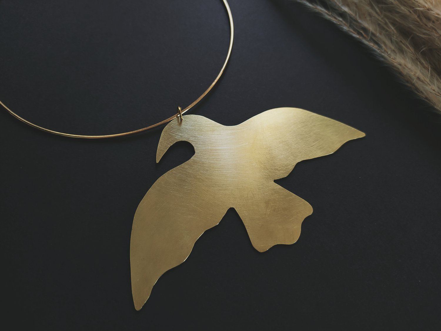 L'oiseau en laiton a été découpé, travaillé puis poli à la main par mes soins